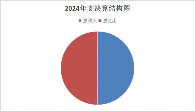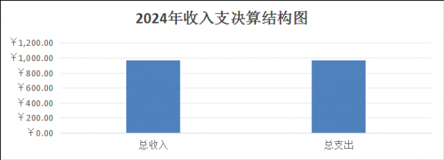 2024年度收、支总计均为969.58万元。与2023年度相比,收、支总计各降低102.76万元,降低9.6%。主要变动原因是2024年财政补助收入比2023年相比减少了6.82万元,比2023年减少了1.7%;2024年度业务收入比2023年减少了95.94万元,比2023年度减少14.3%;2024年支出总计969.58万元。