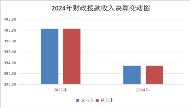 2024年度财政拨款收、支总计均为393.46万元。与2023年相比,财政拨款收、支总计各减少6.82万元,减少1.7%。主要变动原因是社会保障补助收入减少。
