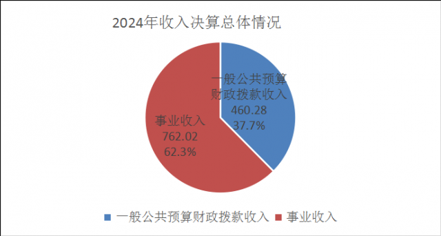 2024年度收入合计1222.3万元,其中:一般公共预算财政拨款收入460.28万元,占37.7%;事业收入762.02万元,占62.3%。