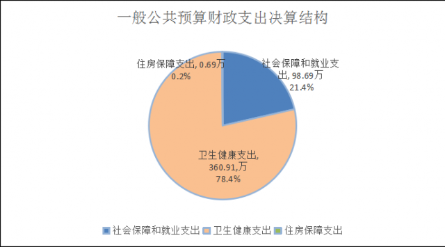 2024年度一般公共预算财政拨款支出460.28万元,主要用于以下方面:社会保障和就业支出98.69万元,占21.4%;卫生健康支出360.9万元,占78.4%;住房保障支出0.69万元,占比0.2%。