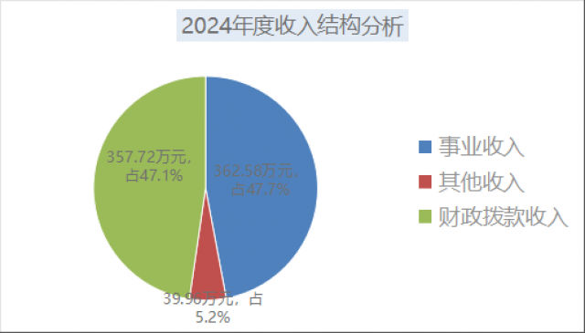 2024年度本年收入合计760.26万元,其中:一般公共预算财政拨款收入362.58万元,占47.7%;事业收入357.72万元,占47.1%;其他收入39.96万元,占5.2%。