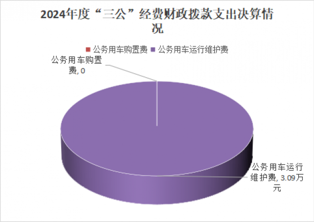 2024年度“三公”经费财政拨款支出决算中,公务用车购置及运行维护费支出决算3.09万元,占100%。具体情况如下:
