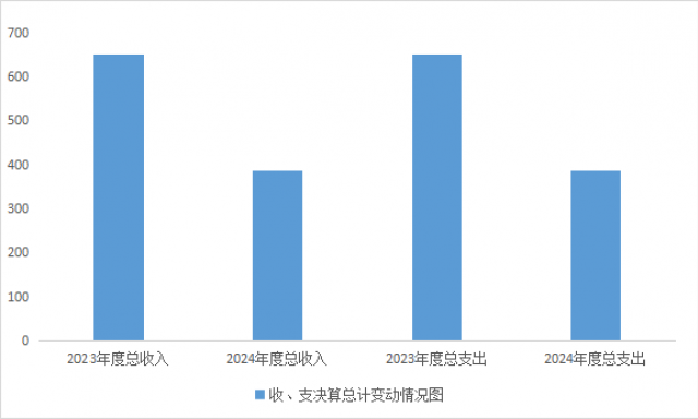 2024年度收、支总计均为387.93万元。与2023年度相比,收、支总计各减少263.31万元,下降67.9%。主要变动原因是财政拨款收入比上年度减少263.31万元。