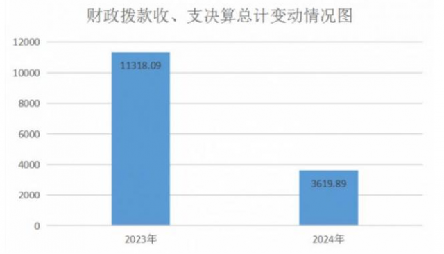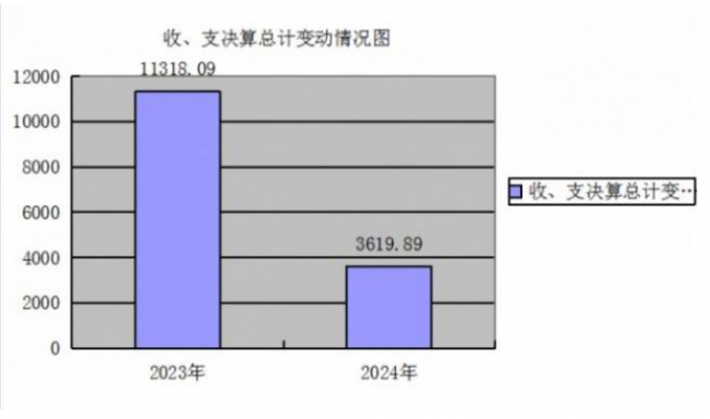 2024年度财政拨款收入、支出总计均为3619.89万元。与2023年度相比,财政拨款收入总计、支出总计各减少7698.2万元,下降68.02%。主要变动原因是政府性基金预算财政拨款收入、支出的减少。