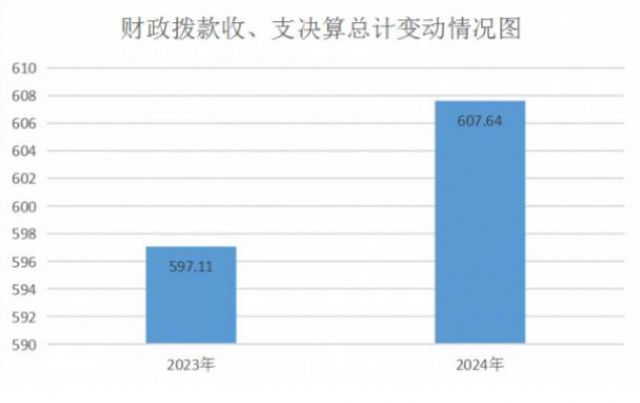 2024年度财政拨款收入、支出总计607.64万元。与2023年相比,财政拨款收、支总计各增加10.53万元,增长1.76%。主要变动原因是:一是每年度职工工资正常调增及调整公积金、机关事业单位养老保险缴费、医疗费用等费用基数,由此带来相关费用增加;二是2024年9月新招录1人。