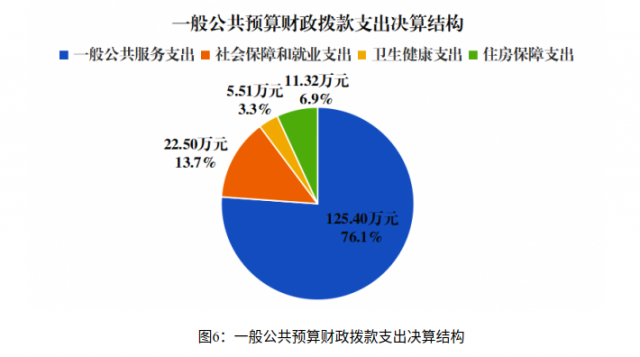 2024年度一般公共预算财政拨款支出164.73万元,主要用于以下方面:一般公共服务支出125.40万元,占76.1%;教育支出0万元,占0%;科学技术支出0万元,占0%;文化旅游体育与传媒支出0万元,占0%;社会保障和就业支出22.50万元,占13.7%;卫生健康支出5.51万元,占3.3%;住房保障支出11.32万元,占6.9%。