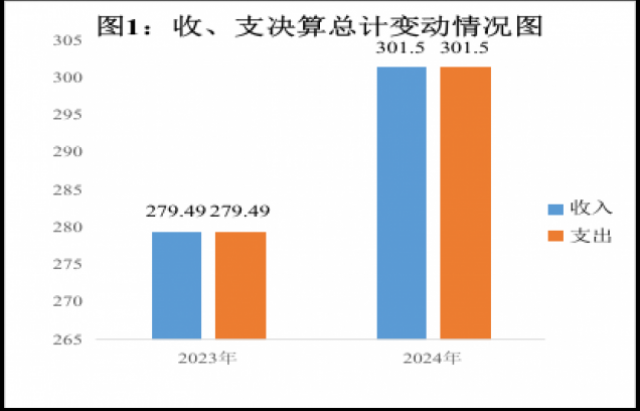 2024年度收入、支出总计均为301.5万元。与2023年度相比,收入、支出总计各增加22.01万元,增长8%。主要变动原因是人员调资晋级及服务对象人数增加。