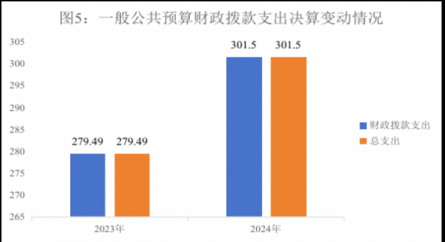 2024年度财政拨款收入、支出总计均为301.5万元。与2023年度相比,财政拨款收入总计、支出总计各增加22.01万元,增长8%。主要变动原因是人员调资晋级及服务对象人数增加。