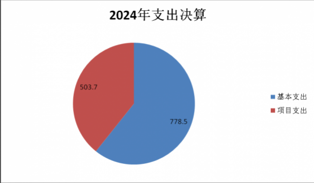 2024年度本年支出合计1282.2万元,其中:基本支出778.5万元,占60.7%;项目支出503.7万元,占39.3%。