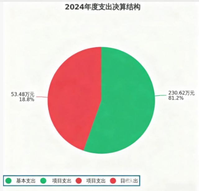 2024年度本年支出合计284.10万元,其中:基本支出230.62万元,占81.2%;项目支出53.48万元,占18.8%。