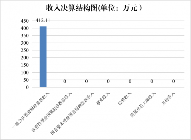2024年度本年收入合计412.11万元,其中:一般公共预算财政拨款收入412.11万元,占100%;政府性基金预算财政拨款收入0万元;国有资本经营预算财政拨款收入0万元;上级补助收入0万元;事业收入0万元;经营收入0万元;附属单位上缴收入0万元;其他收入0万元。