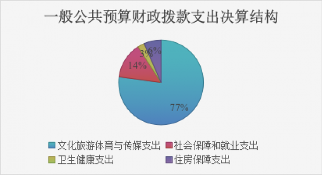 2024年度一般公共预算财政拨款支出954.1万元,主要用于以下方面:文化旅游体育与传媒支出735.94万元,占77%;社会保障和就业支出131.08万元,占14%;卫生健康支出24.94万元,占2.5%;住房保障支出62.14万元,占6.5%。