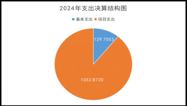 2024年度本年支出合计1182.6273万元,其中:基本支出129.7553万元,占10.97%;项目支出1052.8720万元,占89.03%。