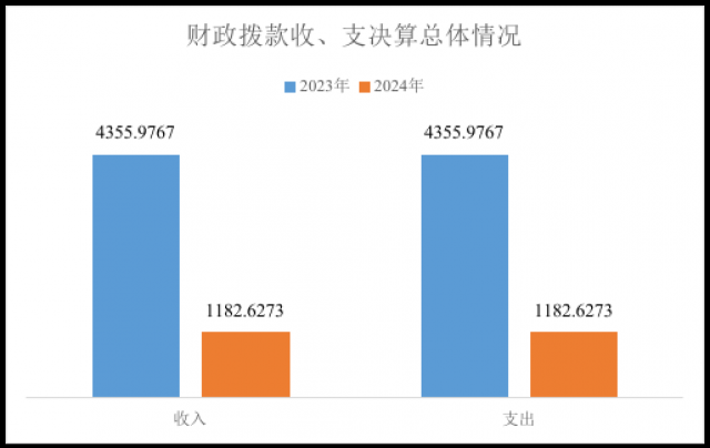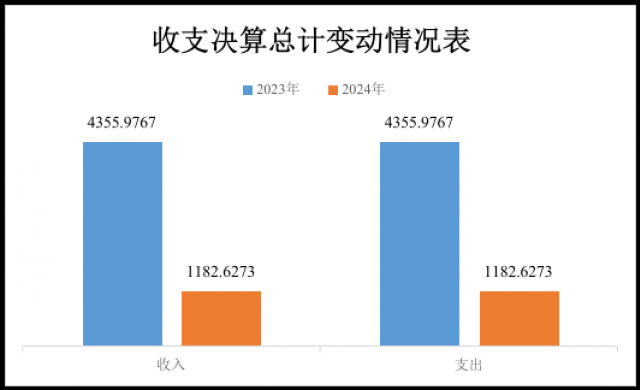 2024年度财政拨款收入、支出总计均为1182.6273万元。与2023年度相比,财政拨款收入总计、支出总计各减少3173.3494万元,下降72.85%。主要变动原因是项目支出减少。