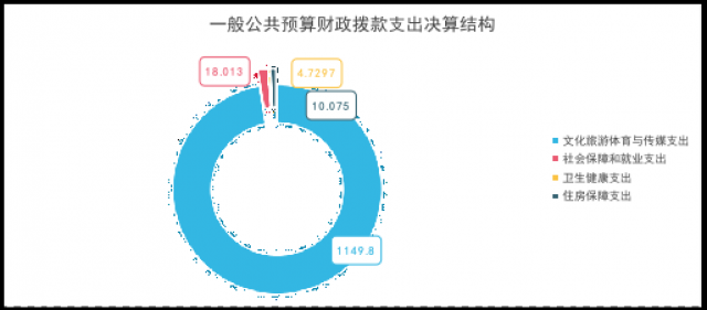 2024年度一般公共预算财政拨款支出1182.6273万元,主要用于以下方面:文化旅游体育与传媒支出1149.8089万元,占97.22%;社会保障和就业支出18.0133万元,占1.52%;卫生健康支出4.7297万元,占0.40%;住房保障支出10.0754万元,占0.85%。