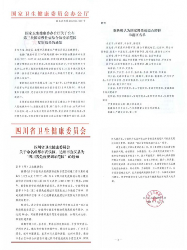 免疫规划示范引领,织密疫苗防护“安全网”。2021年7月21日,该地区被省卫生健康委命名为“四川省免疫规划示范区”,建成规范化预防接种门诊44家(其中AAA级以上占比高达50%以上、AAAA级5家、AAAAA级2家),国家免疫规划疫苗接种率持续保持在90%以上,持续开展AFP、麻疹等监测,维持无脊灰状态,流动儿童管理率达90%。