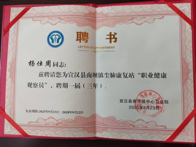 2025年10月以来,宣汉县南坝镇尘肺病康复站在稳定基本人员配备、协同村级医疗卫生机构的基础上,聚焦如何更紧密、更有效地服务散居各处的尘肺病患者这一关键问题,创新推出了聘用“职业健康观察员”的新模式。此举旨在确保辖区内的每一位尘肺病患者都能“病有所康复”,在改善生存质量的道路上,感受到更贴近、更温暖的助力。