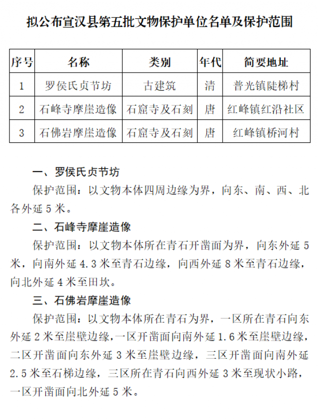 附件:拟公布宣汉县第五批文物保护单位名单及保护范围
