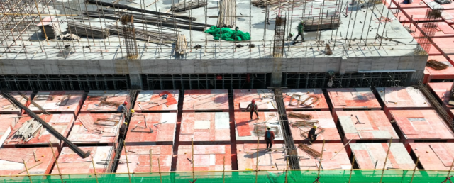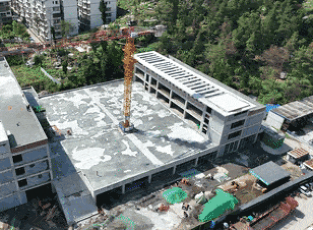 在施工现场,记者看到,项目主体结构工程已基本完成,工人们正有序拆除脚手架,为后续屋面钢结构安装作业做好充足准备;功能设备用房区域,工人们正加紧开展屋面钢筋安装、绑扎固定等工序,全力冲刺各阶段建设节点,现场一派繁忙的建设景象。
